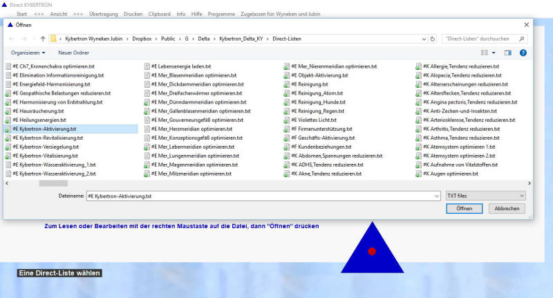Mit dem Direct-Programm können Sie Menschen, Tiere, Pflanzen, Räume, Firmen, Wasser, Schmuck, Steine und belliebige Objekte aktivieren und vitalisieren.