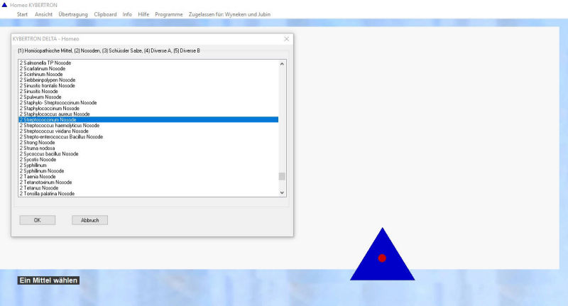 Wählen Sie aus einer Datenbank von über 2000 homöopatischen Mitteln und Nosoden. Nach der Auswahl der passenden Inhalte können die betreffenden Schwingungen gesendet werden.